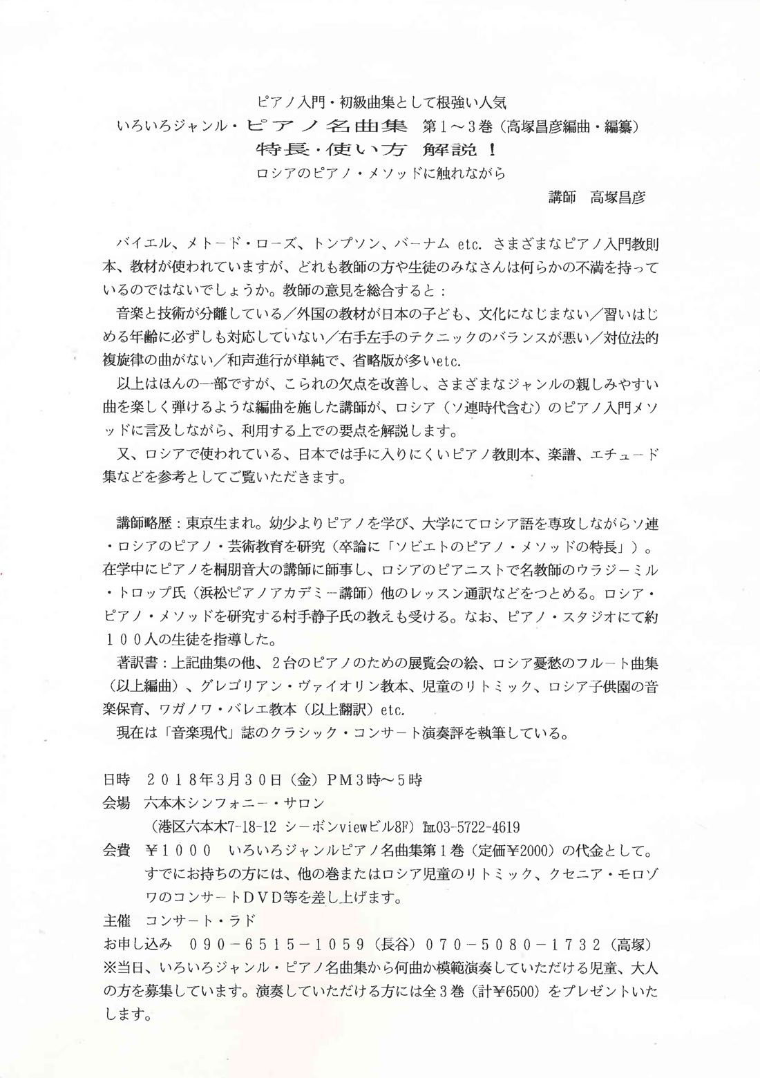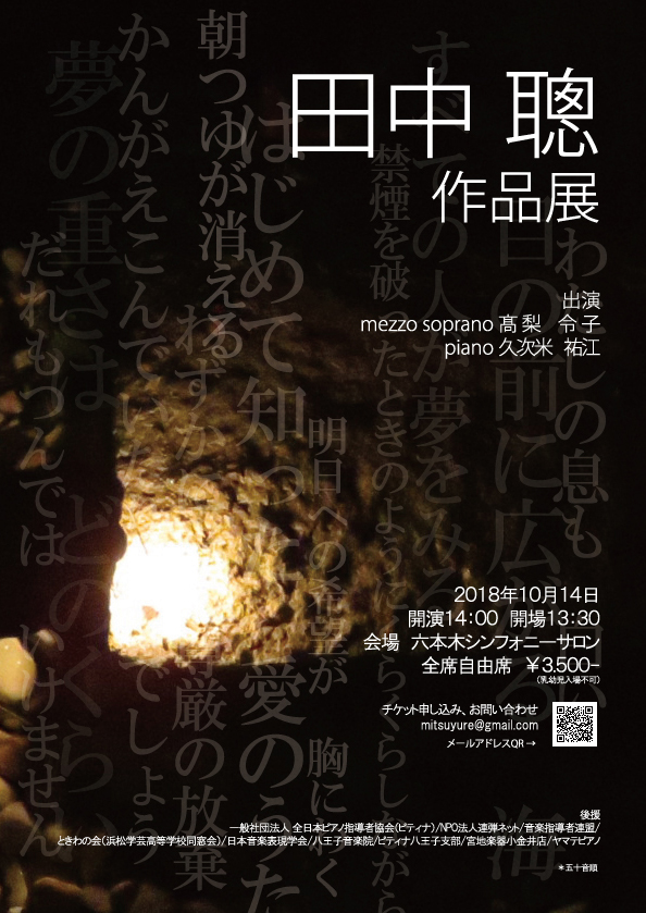 出演 :渡邊 史(ソプラノ)、谷合 千文(ピアノ)