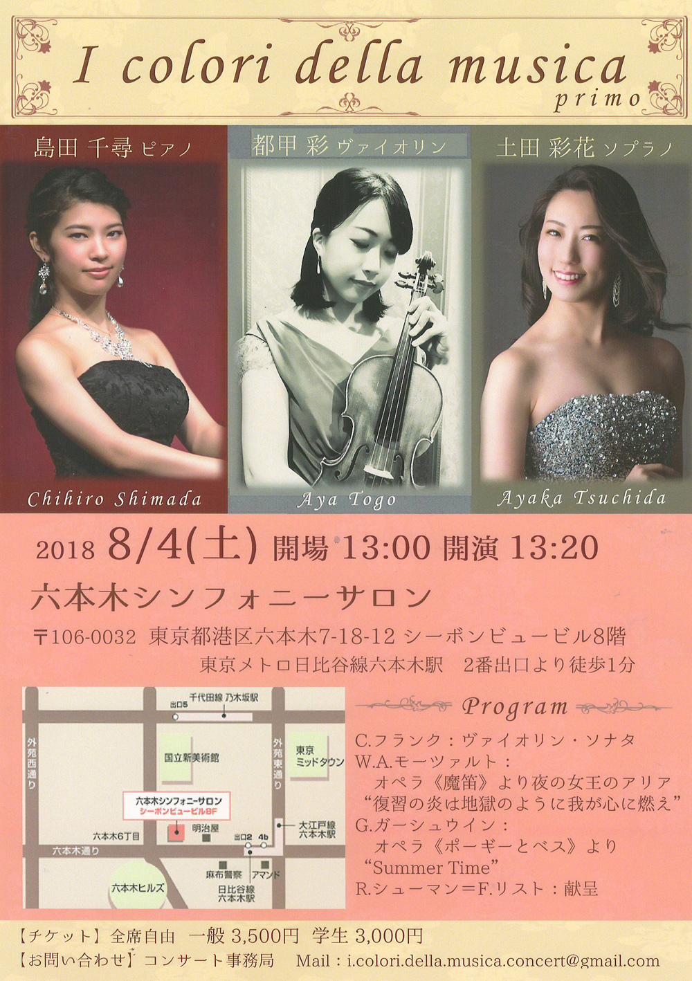 出演 :市村 彩夏(ソプラノ)、小林 紗英子(ソプラノ)、飯塚 恭子(ソプラノ)