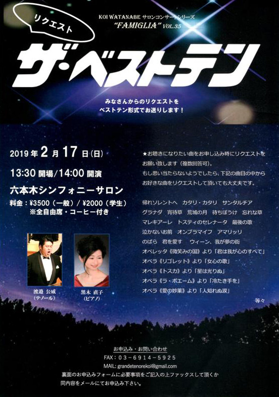 渡邉公威 サロンコンサートシリーズ "FAMIGLIA" ファミーリア vol.38