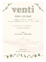 2020年1月25日 18:00開場 18:30開演 料金5000円 定員40人
