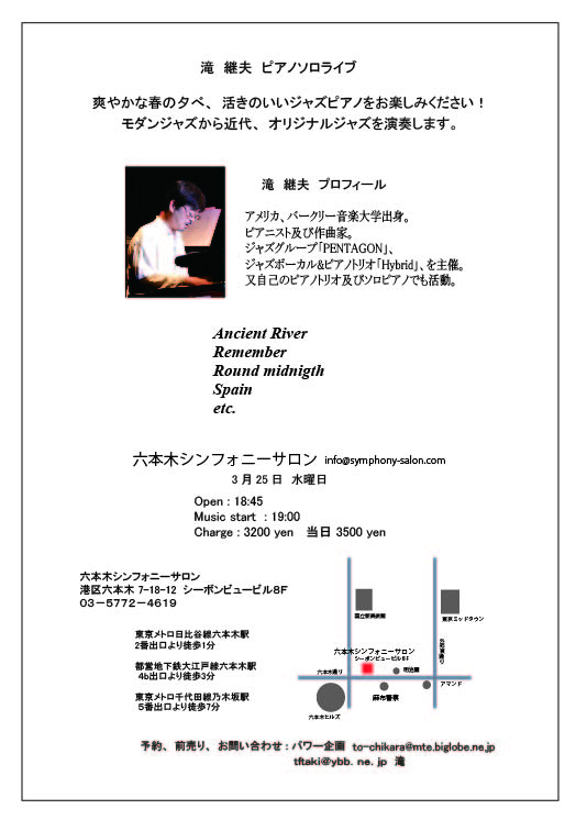 2020年3月15日 115:20開場 15:30開演 5000円(全自由席・ドリンクサービス付き)