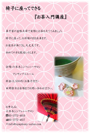 お道具がなくても、大丈夫です。- このクラスは料金が異なります。 3,500円/1回(お菓子付き)