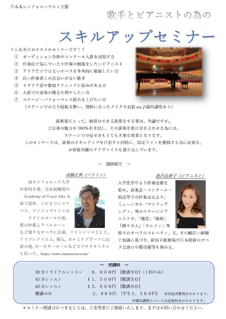 講師は、ダイナミックな歌声とカリスマ的な表現力で多くの人を魅了するバリトン歌手髙橋正典様と、