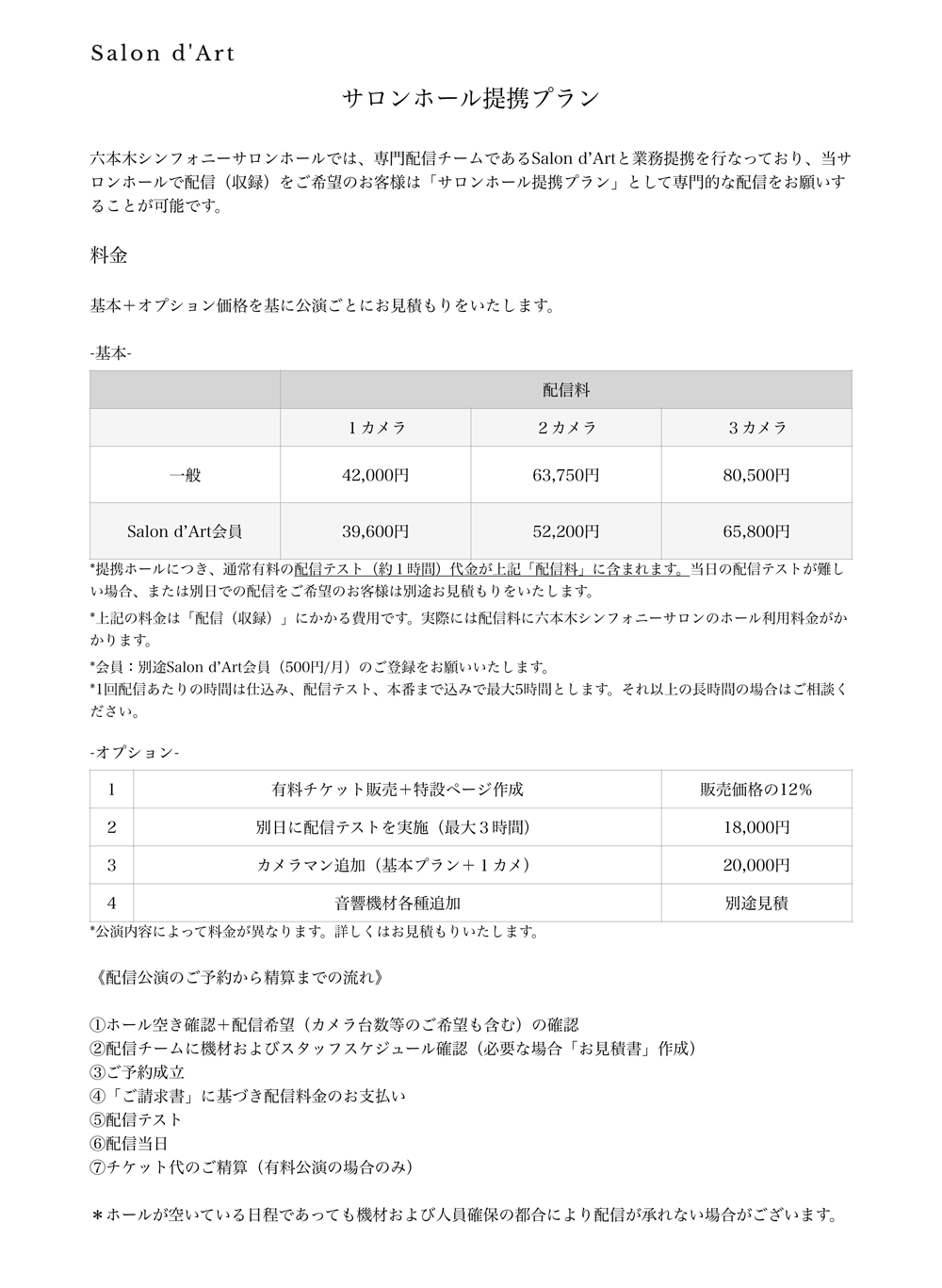 この度、更にクオリティーの高い配信サービスという事で、Salon d'Art 様に技術委託し、 より良い配信サービスを一般の方対象にご提案できる運びとなりました。